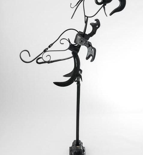 Par cette sculpture j’ai réveillé RAIJIN, dieu de la foudre, venu souffler son courroux sur notre époque provocatrice et insolente. Cette entité s’abat sur DAIKOKUTEN, dieu de la richesse, personnage « à l’allure manga » que l’on distingue nettement en vue plongeante